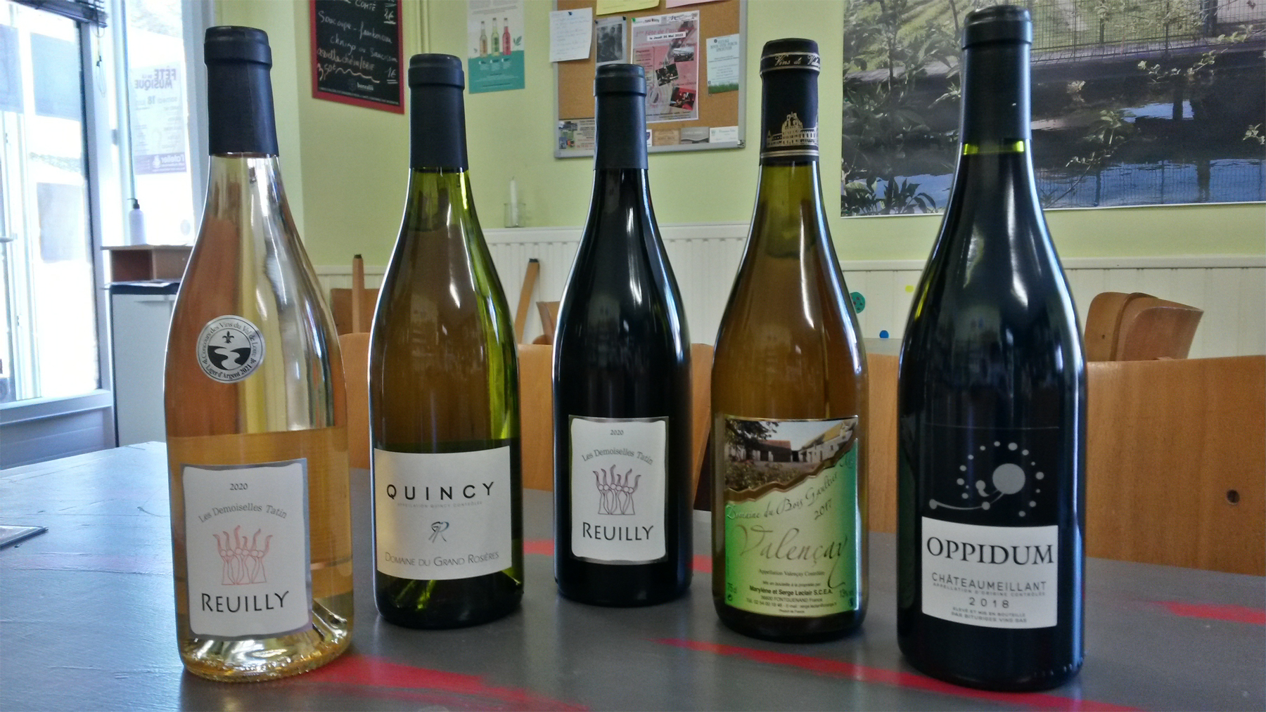 Une cave à vins avec une sélection de domaines locaux et d'autres vins de France.